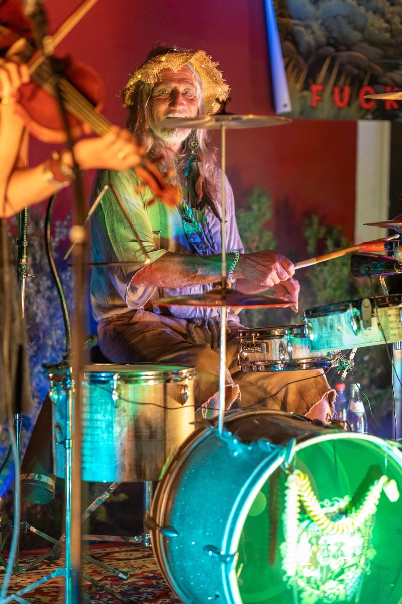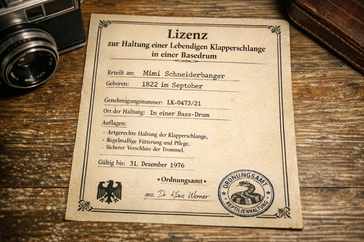 Mr. Mimi Sneiderbanger ist Schlagzeuger und Schlangenbändiger der Band.